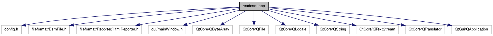 #include "config.h"#include "fileformat/EsmFile.h"#include "fileformat/Reporter/HtmlReporter.h"#include "gui/mainWindow.h"#include <QtCore/QByteArray>#include <QtCore/QFile>#include <QtCore/QLocale>#include <QtCore/QString>#include <QtCore/QTextStream>#include <QtCore/QTranslator>#include <QtGui/QApplication>